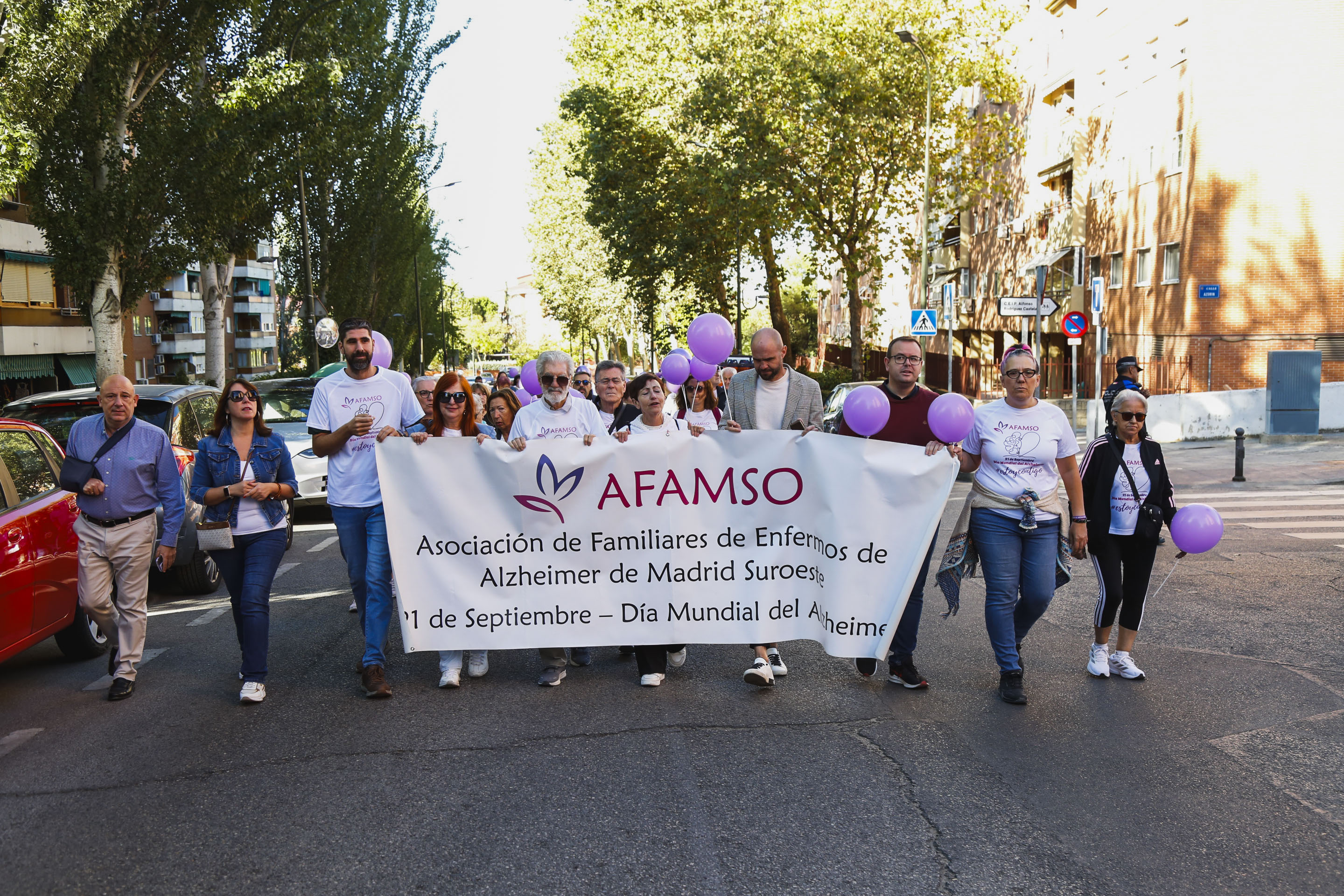 - Las calles de Móstoles han sido el escenario de la X Marcha Solidaria, organizada por AFAMSO, para visibilizar el Alzheimer y en apoyo a las personas que lo padecen y sus familiares.