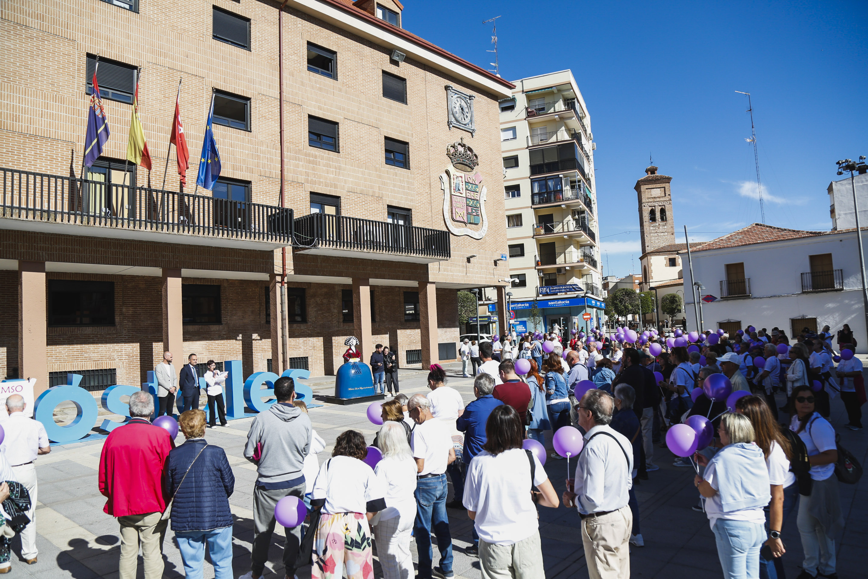- El alcalde de Móstoles, Manuel Bautista; el concejal de Deportes y Sanidad, Ángel Álvarez, miembros de la Corporación Municipal, representantes del tejido asociativo de la ciudad y numerosos vecinos de Móstoles han asistido a la lectura del manifiesto en la Plaza de España.