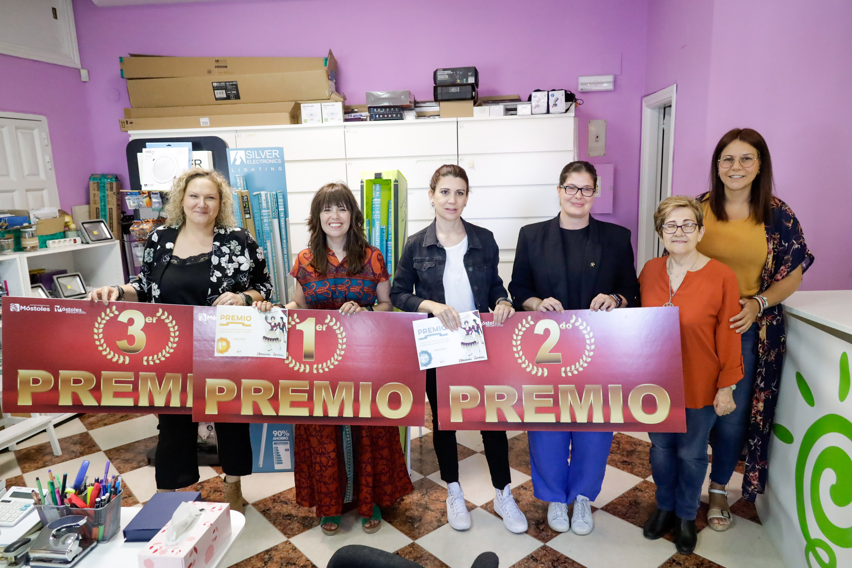 La Alcaldesa, Noelia Posse, acompañada de la Concejala de Empleo y Nuevas Tecnologías, Rebeca Prieto, y la Presidenta de la Coral Villa de Móstoles, Irene Villamiel, ha entregado hoy los galardones a mejor escaparate en la tienda GreenLed y los galardones a mejor creación gastronómica en el bar restaurante Buenaventura.