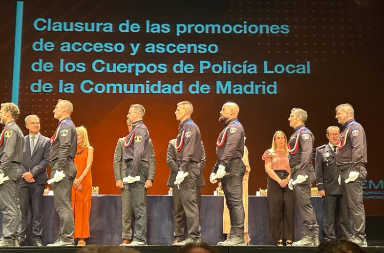 El Concejal de Seguridad, Emergencias, Movilidad y Medio Ambiente, Gabriel Monteserín, y el Jefe de Policía Municipal, Juan Manuel Arribas, asistieron ayer al acto de clausura de los cursos de acceso, ascenso y promoción interna de las distintas categorías profesionales que conforman las policías locales de la región, que estuvo presidido por el Consejero de Medio Ambiente, Agricultura e Interior, Carlos Novillo, y que se celebró en el Teatro Auditorio Ciudad de Alcobendas.