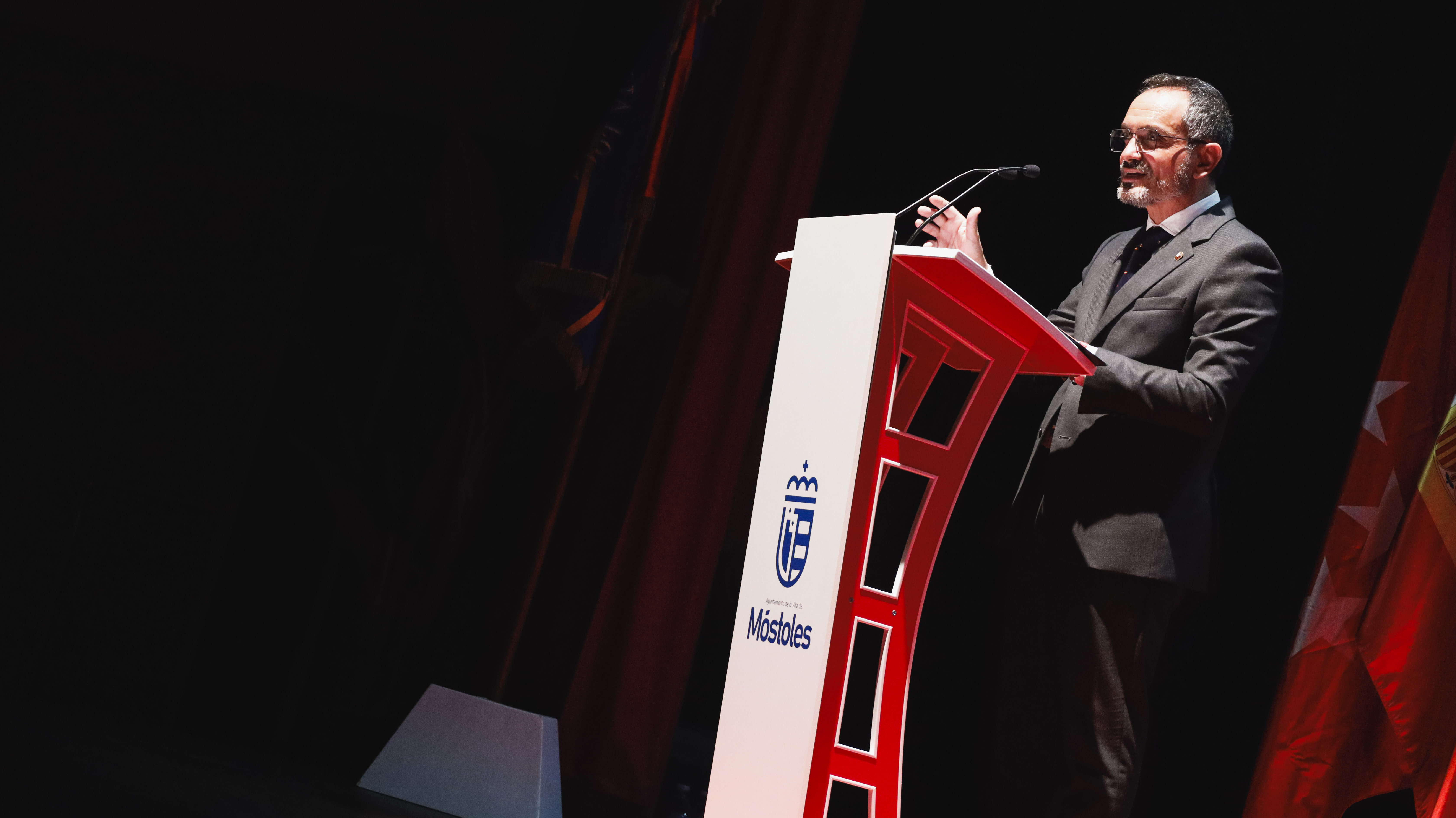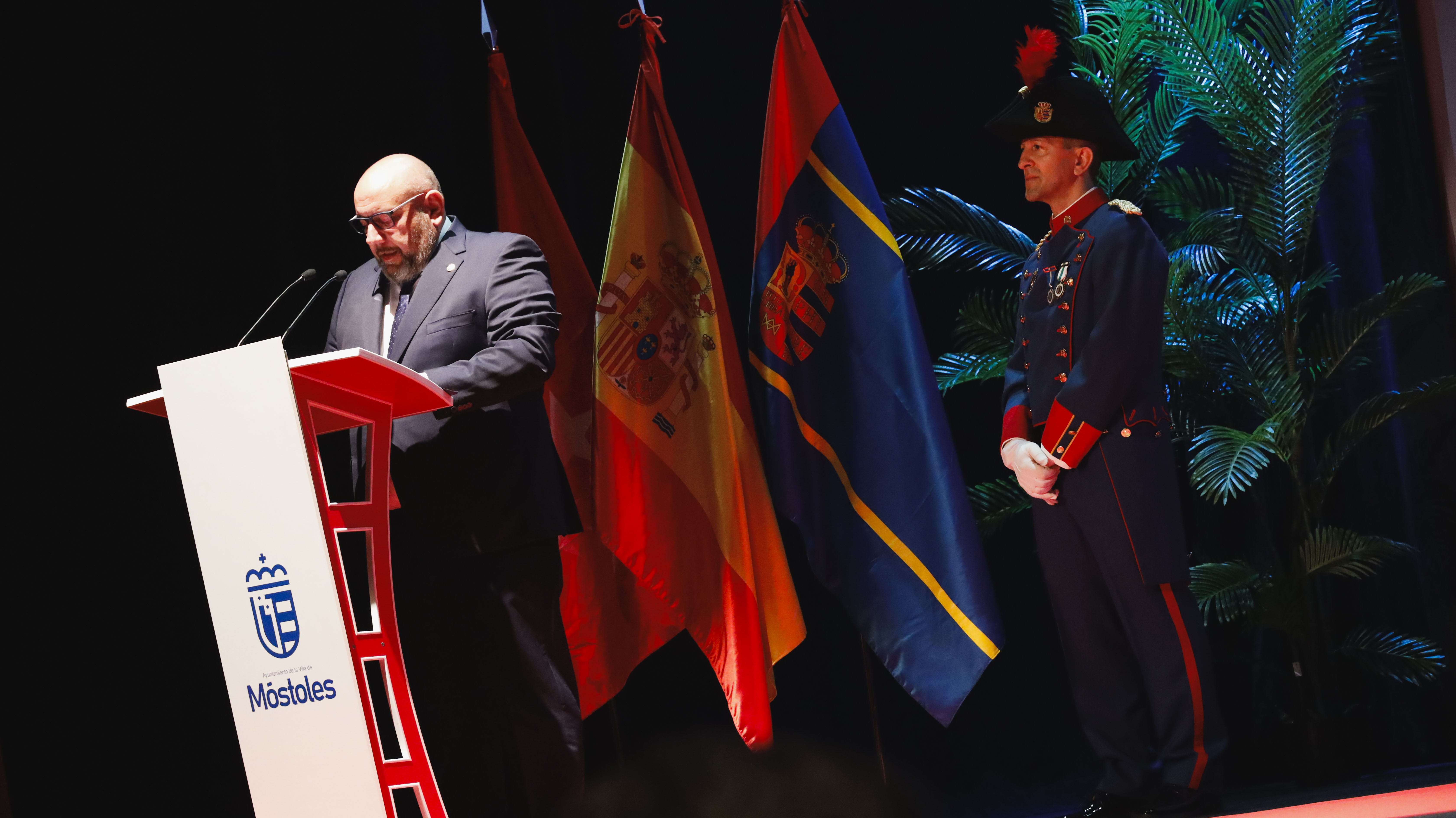 - Tras el izado de bandera en la Plaza de la Cultura, acompañado del himno nacional, se ha celebrado el acto central en el Centro Cultural Villa de Móstoles.