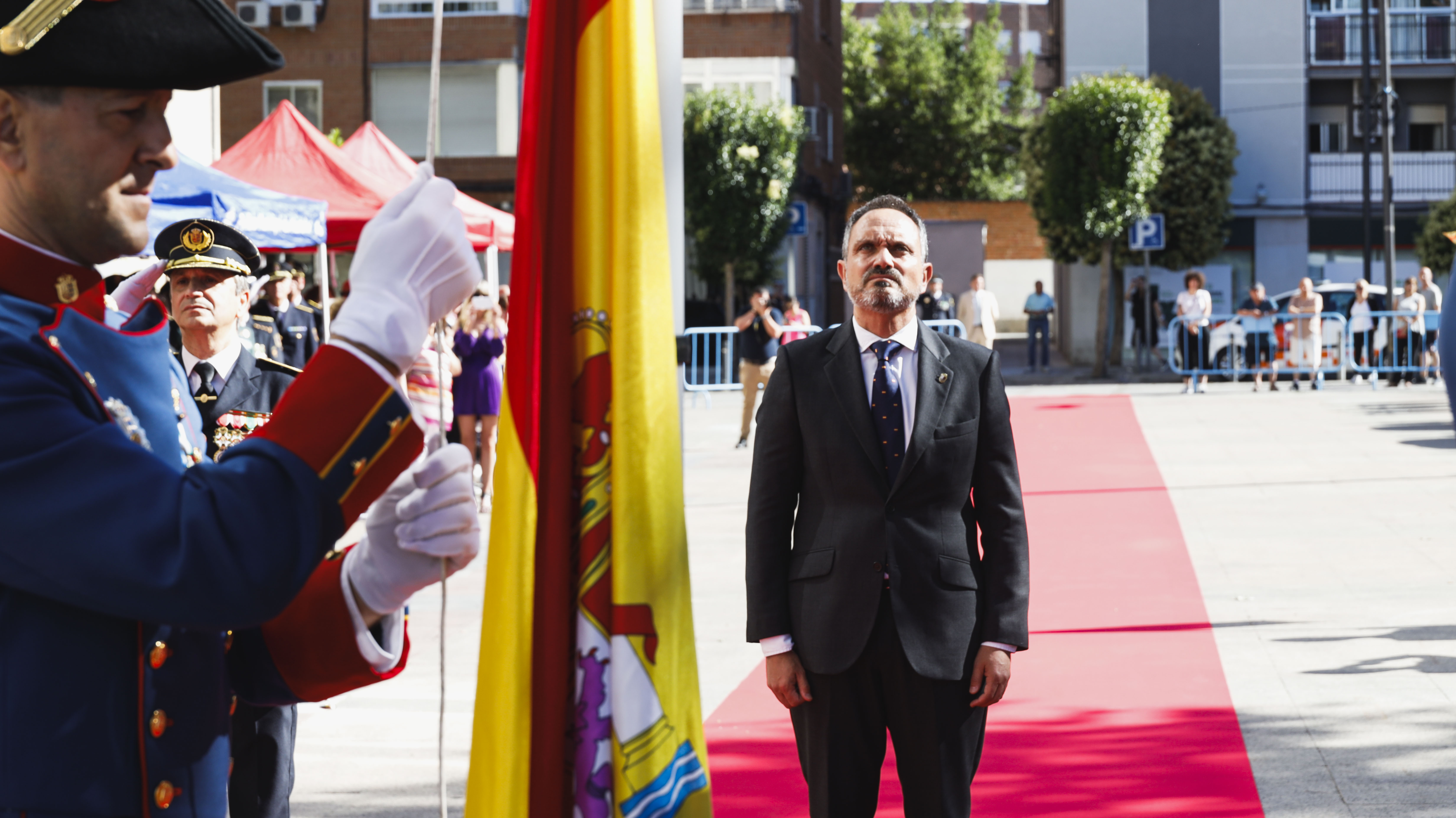 Previamente, se ha procedido al izado de bandera en la Plaza de la Cultura, mientras sonaba el himno nacional, por parte de agentes de la Policía Municipal de Móstoles ataviados con el traje de etiqueta.