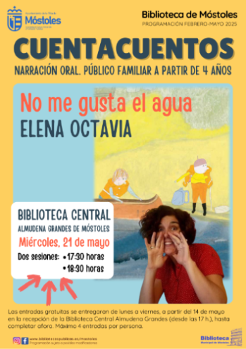 Ese mismo día, el miércoles 21, Elena Octavia estará en la Biblioteca Central con el cuentacuentos "No me gusta el agua", a las 17:30 h y a las 18:30 h.